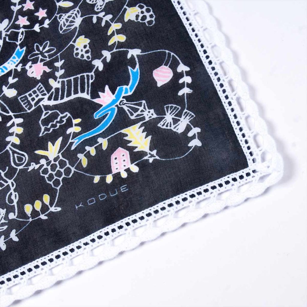You will enjoy the pop and delicate designs of branches, leaves, birds, and ribbons. Lace sewn onto the outer fabric doubles the cuteness.